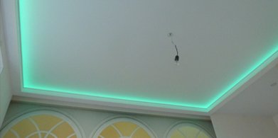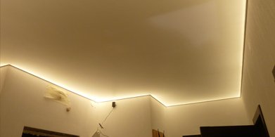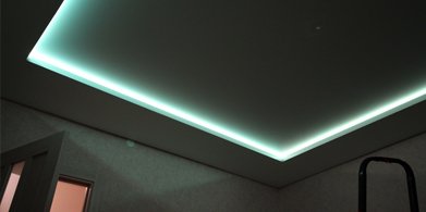 Комната, 16 кв.м., 4 угла, переход уровня с закарнизной подсветкой, закладная для люстры