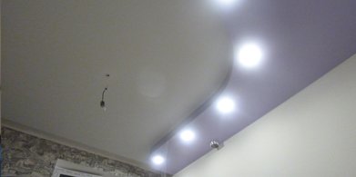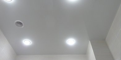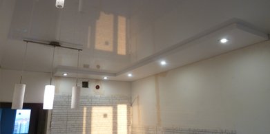 В стоимость входит: матовое/сатиновое/глянцевое белое полотно шириной 3,6м до 27м.кв, выкройка 12 углов, обход 1 трубы.